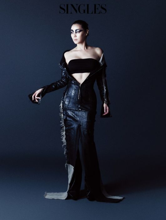 짙은 스모키 화장과 가죽 소재의 의상으로 강렬한 이미지를 선보이며 팜므파탈의 매력을 발산했다.