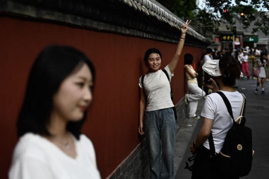 중국 베이징에서 관광객들이 사진 촬영을 하고 있다. (사진=AFP) |