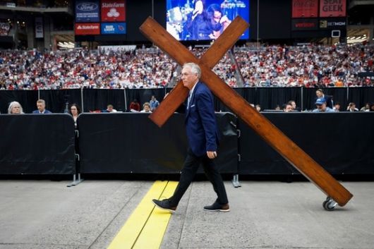 실제로 이번 추모식에 앞서 행사가 시작된 스테이트 팜 스타디움에는 대형 십자가가 등장하기도 했다.