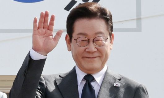 유엔총회 참석차 출국하는 이재명 대통령과 김혜경 여사가 22일 성남 서울공항에서 공군 1호기에 탑승하며 환송객들을 향해 인사하고 있다. 연합뉴스 |