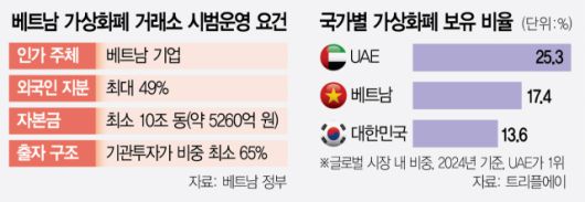 이는 베트남 정부가 최근 가상화폐거래소 시범 운영을 허용한 데 따른 것이다. 베트남 정부는 이달 초 향후 5년간 시범사업 형태로 코인 거래와 함께 가상화폐거래소 설립을 허용하는 내용의 결의안을 발효했다. 베트남에서는 지난해 6월 가상화폐를 인정하는 법안이 통과되면서 가상화폐 제도화에 속도를 내고 있다.