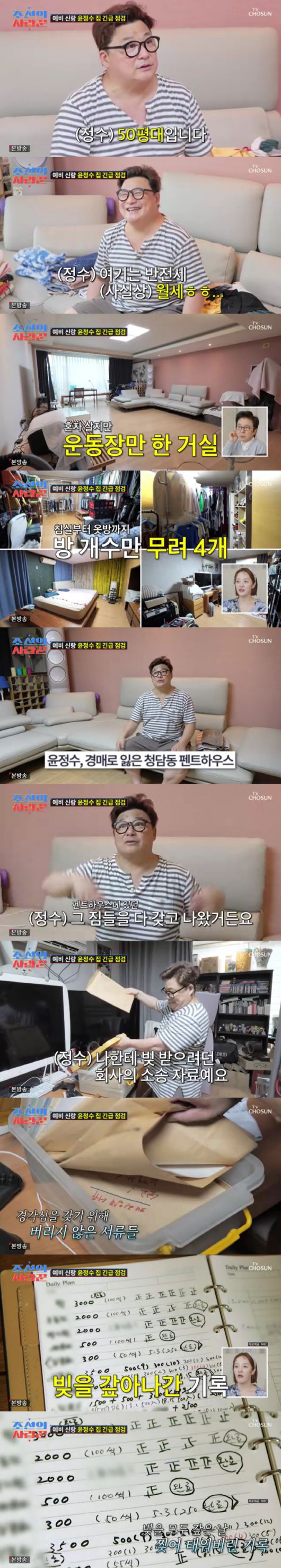 22일 방송된 TV조선 '조선의 사랑꾼'에서는 윤정수가 직접 꾸민 집을 제작진에게 소개하는 모습이 담겼다.