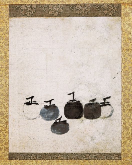 목계, 여섯 개의 감, 13세기, 종이에 먹, 36x38cm, 일본 교토 다이토쿠지 소장. |