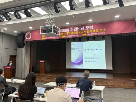 서지용 상명대 교수가 22일 은행회관 2층에서 열린 '2025 캐피탈 미래비전 포럼'에서 발표를 하고 있다./사진=전하경 기자 |