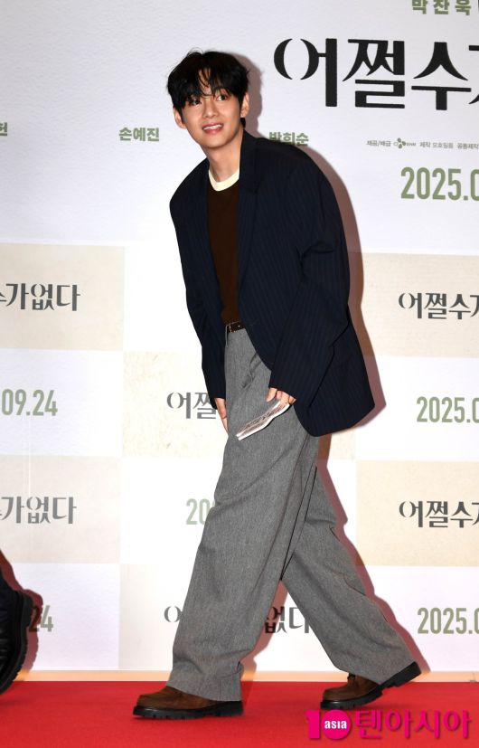 [텐아시아=조준원 기자]그룹 방탄소년단 뷔가 22일 서울 용산구 CGV 용산아이파크몰에서 열린 영화 <어쩔수가없다> 셀럽시사회에 참석하고 있다.