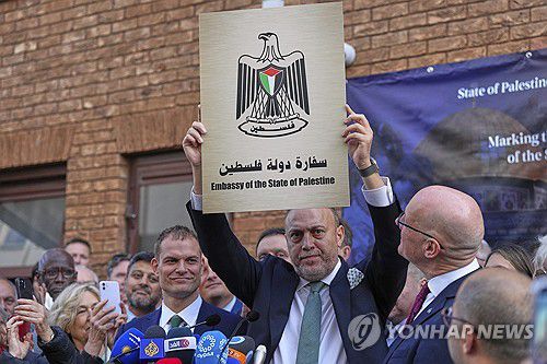 좀로트 대표는 '팔레스타인 국가 대사관'이라고 쓰인 명판을 들어 보이며 "여기에 설치될 것"이라며 "법적, 행정적 업무를 처리 중"이라고 설명했다.