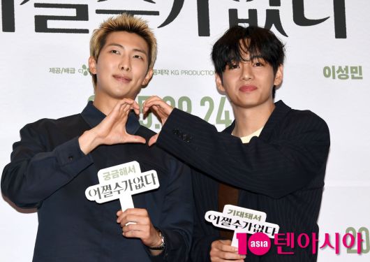 [텐아시아=조준원 기자]그룹 방탄소년단 RM과 뷔가 22일 서울 용산구 CGV 용산아이파크몰에서 열린 영화 <어쩔수가없다> 셀럽시사회에 참석하고 있다.