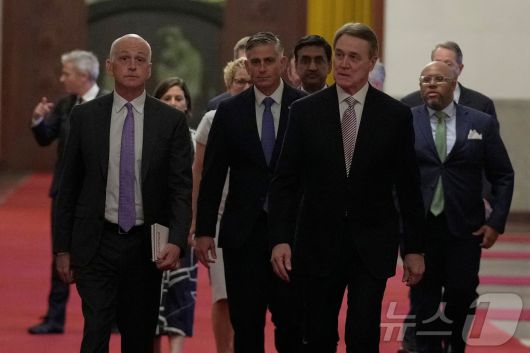 미국 민주당 애덤 스미스 의원을 대표로 하는 하원 의회 대표단이 21일 중국 베이징 인민대회당에서 리창 총리와 회담을 하기 위해 이동하고 있다. 2025.9.21 ⓒ 로이터=뉴스1 ⓒ News1 정은지 특파원 |
