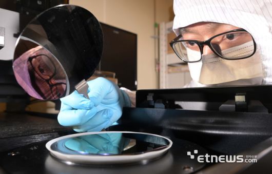 디지털 전환(DX)을 넘어 인공지능 전환(AX) 전환이 화두가 되고 있는 가운데 반도체가 필수 기술로 각광을 받고 있다. 차세대융합기술연구원은 최첨단 반도체 분석 장비를 도입, 중소업체의 기술 이전 및 분석을 지원한다. 18일 경기 수원시 차세대융합기술연구원에서 연구원이 반도체 개발을 위한 소마 미세 패터닝 작업을 준비하고 있다. 김민수기자 mskim@etnews.com |