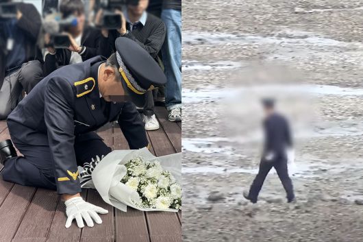 23일 인천해양경찰서와 소방당국에 따르면 전날 오전 11시55분쯤 인천시 옹진군 영흥도 하늘고래 전망대 인근 갯벌에 A 경위가 들어갔다는 신고가 해경에 접수됐다. 순직 사고 당시 파출소 당직 팀장인 A 경위는 전날 이 경사 유족들의 추모 현장을 찾아 무릎을 꿇고 사죄했고, 사고 지점인 꽃섬 인근에 국화꽃을 두고 오겠다며 돌연 갯벌로 돌진한 것으로 파악됐다.