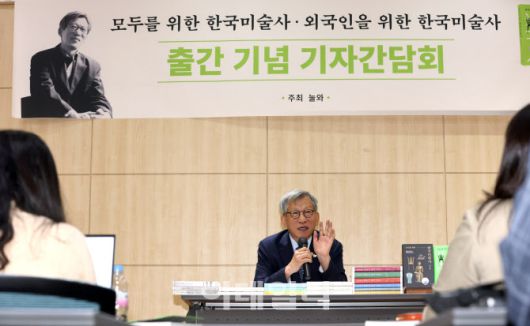 [이데일리 방인권 기자] 미술사학자 유홍준 국립중앙박물관 관장이 23일 서울 마포구 서교동 창비서교빌딩에서 열린 '모두를 위한 한국미술사'·'외국인을 위한 한국 미술사' 출간 기념 기자간담회에서 발언을 하고 있다.