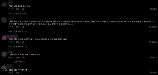 이 밖에도 “일본은 전쟁 범죄를 역사책에 포함하지 않는다. 대부분의 일본인은 자국의 잔혹 행위를 모른다”, “일본은 사과하지 않았다”는 비판이 이어졌다.
