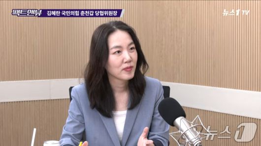 김혜란 국민의힘 강원 춘천갑 당협위원장이 23일 뉴스1TV '팩트앤뷰'에 출연해 질문에 답하고 있다.