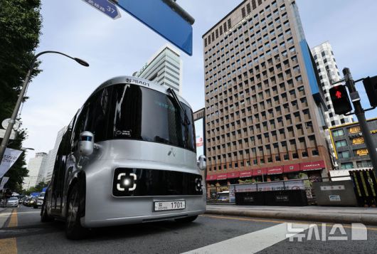 [서울=뉴시스]박주성 권창회 박대로 기자 = 운전석 없는 자율 주행 셔틀 '청계A01' 노선이 23일 오후 1시부터 서울 대표 관광 명소인 청계천을 달린다.