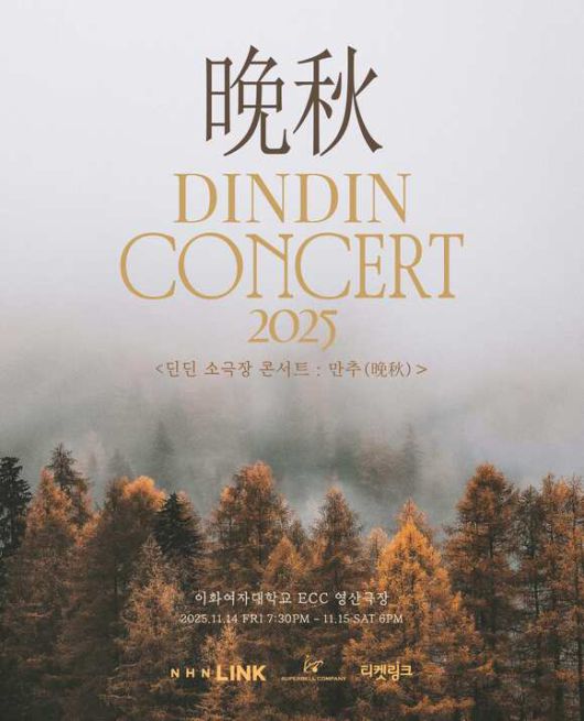 소속사 슈퍼벨컴퍼니는 23일 "딘딘이 오는 11월 14일과 15일 양일간 이화여자대학교 ECC 영산극장에서 소극장 콘서트 '만추(晩秋)'를 열고 팬들과 만난다"고 밝혔다.