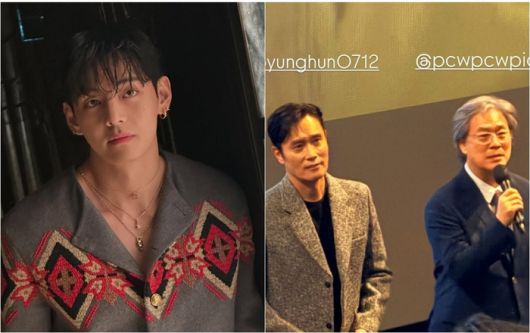 뷔는 23일 인스타그램 계정에 별다른 문구 없이 ‘어쩔수가없다’의 박찬욱 감독과 배우 이병헌의 무대 인사 사진을 올리며 응원을 보냈다.