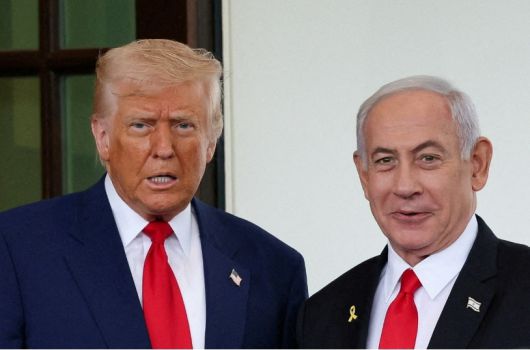 지난 4월 7일 미국 워싱턴D.C. 백악관 입구에서 도널드 트럼프 미국 대통령이 베냐민 네타냐후 이스라엘 총리를 맞이하고 있다. [로이터] |