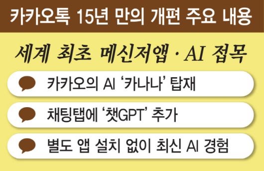 [이데일리 이소현 기자] 카카오톡이 출시 15년 만에 사상 최대 변신에 나섰다. 단순한 메신저를 넘어 AI 기반 생활 플랫폼으로 재도약을 선언하면서 글로벌 메신저 업계의 주목을 받고 있다.