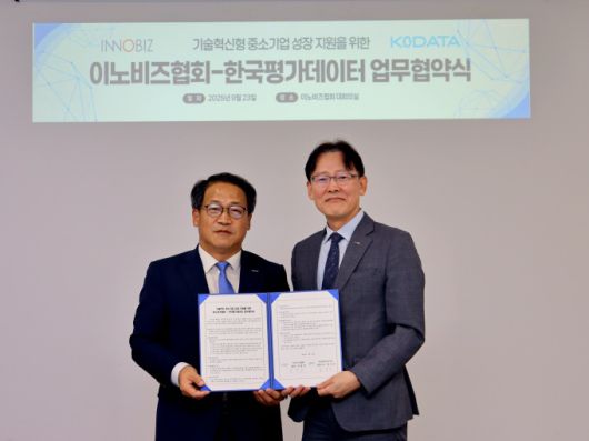 [서울=뉴스핌] 이윤애 기자 = 한국평가데이터(KODATA)는 이노비즈협회와 기술혁신 중소기업의 성장을 지원하기 위한 업무협약을 체결했다고 23일 밝혔다.