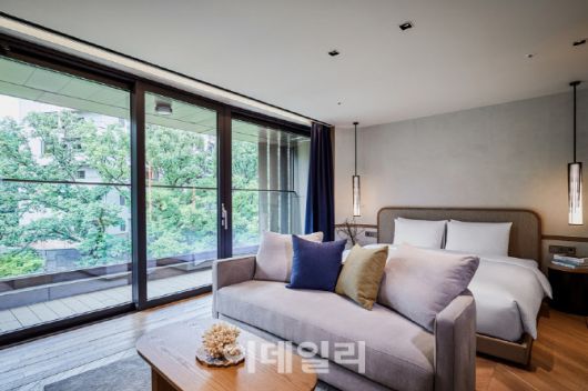 현장을 둘러보면 조 대표의 말이 과장이 아님을 체감할 수 있다. 우드톤과 석재로 마감된 건물은 울창한 숲과 자연스럽게 이어지고, 침대에 누운 채 북한산 정상 백운대가 보이는 전망, 나무 향이 퍼지는 히노키탕과 발코니 자쿠지(야외 스파 욕조)는 설계 방향을 드러낸다. 건물과 자연의 경계를 줄인 구조는 ‘프라이빗 웰니스(사적인 휴식과 치유)’라는 키워드를 구현하려는 의도를 담는다. 리조트에는 키즈룸, 다도룸, 시네마룸, 몰트룸 등 테마 객실이 마련돼 가족 고객은 물론 취향 기반 수요도 염두에 뒀다.