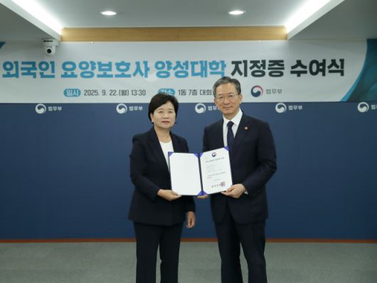 서정대는 지난 22일 법무부 주관으로 열린 ‘외국인 요양보호사 양성대학’ 지정증 수여식에서 정성호 법무부 장관으로부터 증서를 받았다고 밝혔다.