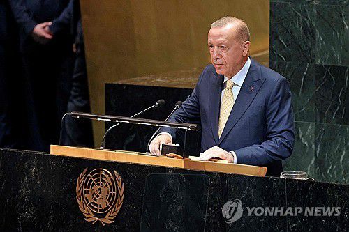 22일(현지시간) 유엔에서 발언하는 레제프 타이이프 에르도안 튀르키예 대통령 |