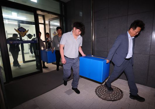 갯벌 구조 활동 중 숨진 해경 이재석 경사 사고와 관련, 검찰 수사관들이 지난 18일 오후 인천 서구 인천해양경찰서를 압수수색하고 압수품을 옮기고 있다./연합뉴스 |