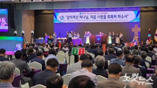 한국기독교장로회 총회는 23일 오후 강원도 홍천 비발디파크에서 '살아계신 하나님, 처음 사랑을 회복케 하소서'를 주제로 제110회 정기총회를 개최했다.