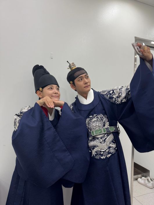 김세정은 왕세자 이강 역의 강태오와 함께 찍은 셀카도 공개했다. 두 사람은 푸른색의 화려한 세자 복장을 입고 코믹하면서도 다정한 포즈를 취하고 있다. 특히 두 배우의 장난기 가득한 표정은 ‘영혼 체인지’라는 독특한 설정에 대한 궁금증을 자아낸다.