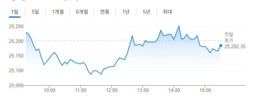 [그래픽=구글 캡쳐] 인도 증시 니프티50 지수 23일 추이 |