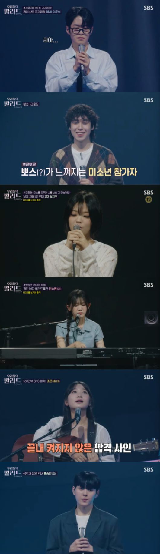 23일 SBS 새 예능 프로그램 '우리들의 발라드'가 첫 방송됐다. 심사위원으로 전현무, 정재형, 추성훈, 차태현, 박경림, 대니 구, 크러쉬, 미미, 정승환이 출연했다.