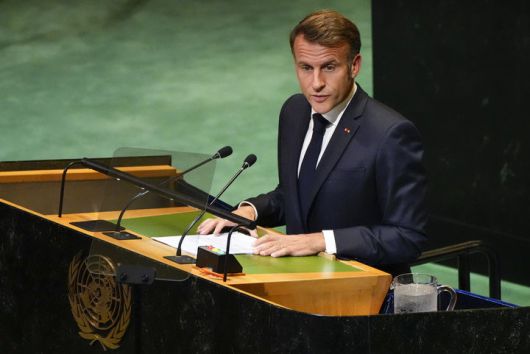 [뉴욕=신화/뉴시스] 에마뉘엘 마크롱 프랑스 대통령이 22일(현지 시간) 미국 뉴욕의 유엔 본부에서 팔레스타인 사안의 평화적 해결과 두 국가 해법 실행을 논의하는 고위급 국제회의를 주재하고 있다. 마크롱 대통령은 이 자리에서 프랑스가 팔레스타인을 국가로 공식 승인했다고 밝혔다. 2025.09.23. |