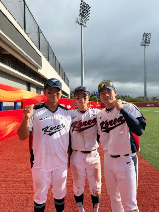 [서울=뉴시스] 아시아야구선수권대회에 나선 한국 야구 대표팀의 류현준, 전다민, 곽동효. (사진 = 대한야구소프트볼협회 제공) *재판매 및 DB 금지 |