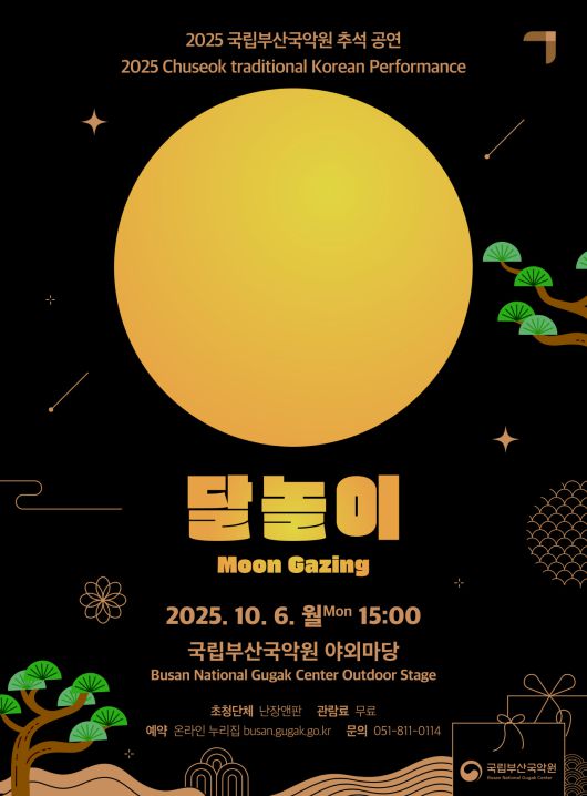 국립부산국악원이 오는 10월 6일 오후 3시 야외마당에서 추석 명절 공연 '달놀이'를 무료로 진행한다고 밝혔다.