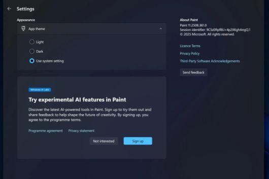 현재 MS 페인트에서 윈도 AI 랩 기능을 활성화하는 프롬프트가 나타나고 있지만, 초기 테스트에 포함될 기능은 아직 명확하지 않다. MS는 최근 페인트에 투명도, 레이어, .paint 프로젝트 파일 지원 등 포토샵과 유사한 기능을 추가했다. 향후 AI 기반 이미지 생성 기능이 포함될 가능성도 있다.