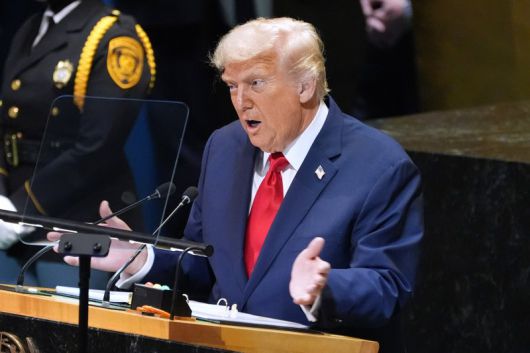 도널드 트럼프 미국 대통령이 23일(현지시간) 미국 뉴욕의 유엔 본부에서 열린 제80차 고위급 회기 일반토의에서 연설하고 있다. 트럼프 대통령의 유엔 총회 연설은 5년만이며, 직접 총회장에서 연설하는 것은 2019년 이후 처음이다.AP뉴시스 |