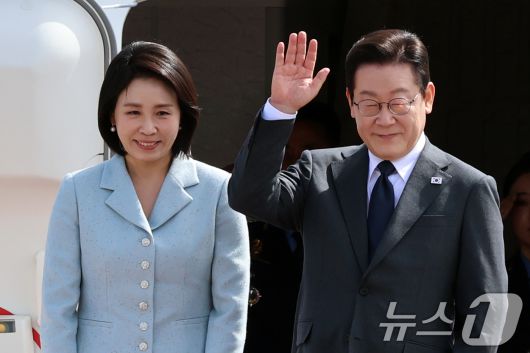 이재명 대통령과 부인 김혜경 여사가 미국 뉴욕에서 열리는 제80차 유엔총회 참석을 위해 지난 22일 오전 경기도 성남 서울공항을 통해 출국하며 인사를 하고 있다. 2025.9.22/뉴스1 ⓒ News1 황기선 기자 |