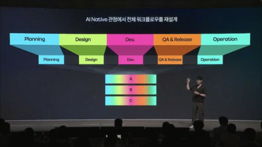 이날 정 CTO는 인프라부터 서비스 릴리즈까지 전 영역에 AI를 적용해온 과정을 공유하며 개인 및 소규모 팀 중심의 AI 실험 조직 기반 확산 및 협업 체계화 기업 차원의 AI 네이티브 전환 등 3단계 목표를 세우고 여정을 이어가고 있다고 설명했다.