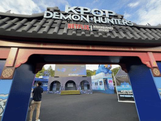[용인=뉴시스]전병훈 기자 = 에버랜드 한복판에 넷플릭스 애니메이션 '케이팝 데몬 헌터스(KPOP DEMON HUNTERS)' 속 세계가 현실로 구현됐다.