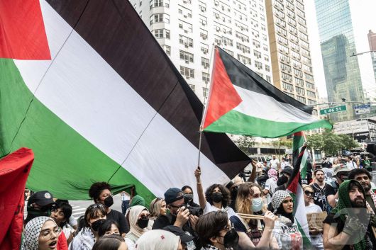 (뉴욕 AFP=뉴스1) 권준언 기자 = 23일(현지시간) 미국 뉴욕 유엔 본부 인근에서 팔레스타인 지지 활동가들이 집회를 벌이고 있다. 이들은 도널드 트럼프 미국 대통령의 연설이 예정된 총회 둘째 날 전국적인 행진을 촉구했다. 2025.09.23. ⓒ AFP=뉴스1 Copyright ⓒ 뉴스1. All rights reserved. 무단 전재 및 재배포, AI학습 이용 금지.