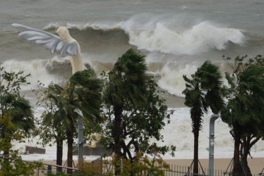 24일 제18호 태풍 라가사가 중국 광둥성 선전의 한 해변에 접근하면서 거대한 파도가 몰아치고 있다. 선전=AP 뉴시스 |
