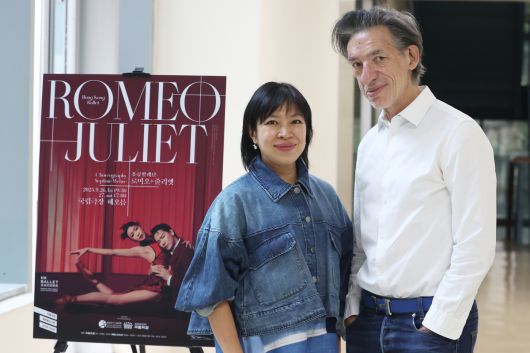 국제 문화교류 행사 ‘홍콩 위크’ 개막작으로 오는 26~27일 서울 국립극장에서 공연되는 <로미오 + 줄리엣> 홍보 이미지에는 붉은 침실을 배경으로 양복을 입은 발레리노와 치파오를 입은 발레리나가 무용수의 긴장감이 느껴지는 몸짓을 한 채로 몸을 맞대고 있다. 영화 <화양연화>의 포스터가 떠오른다. <로미오 + 줄리엣>를 무대에 올리는 셉팀 웨버 홍콩발레단 예술감독은 24일 한국예술종합학교 서초동 캠퍼스에서 열린 기자간담회에서 “한국 사람들도 왕자웨이 감독의 영화 등 홍콩 문화에 대한 추억을 공유하고 있기 때문에 작품을 통해 연결될 수 있다고 생각한다”며 “누구나 아는 보편적인 이야기이면서 가장 홍콩적인 이야기를 통해 관객들의 공감을 이끌어내고 싶다”고 말했다.
