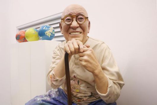 24일 서울 서대문구 박서보재단에서 열린 박서보 화백 자서전 '박서보의 말'과 그래픽 노블 '박서보' 출간 기념 좌담회에 앞서 공개한 수장고에 박서보 화백의 조각상이 놓여 있다. 작고 3년 전의 모습을 3차원(3D) 프린터로 제작했다. 연합뉴스 |