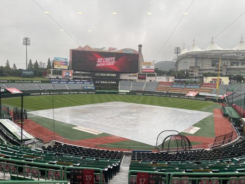 (인천=연합뉴스) 이대호 기자 = 24일 오후 6시 30분 인천 SSG랜더스필드에서 열릴 예정이던 프로야구 SSG 랜더스와 한화 이글스 경기가 비로 취소됐다.