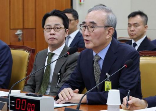 김영섭 KT 대표이사가 24일 국회 과학기술정보방송통신위원회에서 열린 통신·금융 대규모 해킹사고에 대한 청문회에서 의원 질의에 답변하고 있다. 왼쪽은 조좌진 롯데카드 대표이사. 2025.9.24 김현민 기자 |