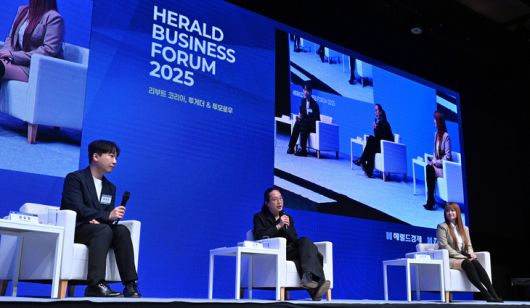 최성운(왼쪽부터) 스튜디오 언볼트 프로듀서, 송길영 작가, 이지영 울산과학기술원 인공지능대학원 특임교수가 24일 서울 중구 신라호텔 다이너스티홀에서 열린 헤럴드 기업포럼 2025스페셜 세션에서 ‘AI와 미래의 삶’을 주제로 대담을 나누고 있다. 임세준 기자 |