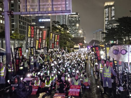 더불어민주당이 오는 25일 정부조직개편안 처리를 예고하자 전날인 24일 저녁 18시30분. 비가 추적추적 내리는 을씨년스러운 날씨에도 1200여명 이상의 금융감독원 직원들이 퇴근 후 무거운 몸과 마음을 이끌고 국회의사당역 3번 출구 앞에 속속 모였다.