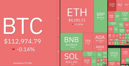 24일 오후 7시 30분, 코인360을 기준으로 비트코인 11만2974달러까지 급락하며 전일 대비 0.14% 하락했다. 이더리움 역시 4185달러로 0.36% 내리는 등 주요 코인들이 일제히 하락했다. 솔라나는 211달러로 3.5% 급락하는 등 주요 종목에 걸쳐 강력한 매도세가 쏟아졌다.
