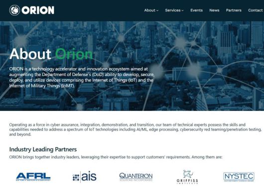 ‘오라이언(ORION, Open-Architecture Resilient IoT for Operational Networks)’은 사물인터넷(IoT)의 빠른 확산에 비해 보안 표준이 뒤따르지 못하는 현실을 인식한 ‘미 공군 연구실’(AFRL, Air Force Research Laboratory, 설립일 1917)과 미국 민간기업 ‘에이아이에스(AIS, Assured Information Security, 설립일 2001)’를 중심으로 출범했다.