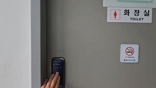 비밀번호를 누르고 사용하는 한국의 화장실. /TVBS |